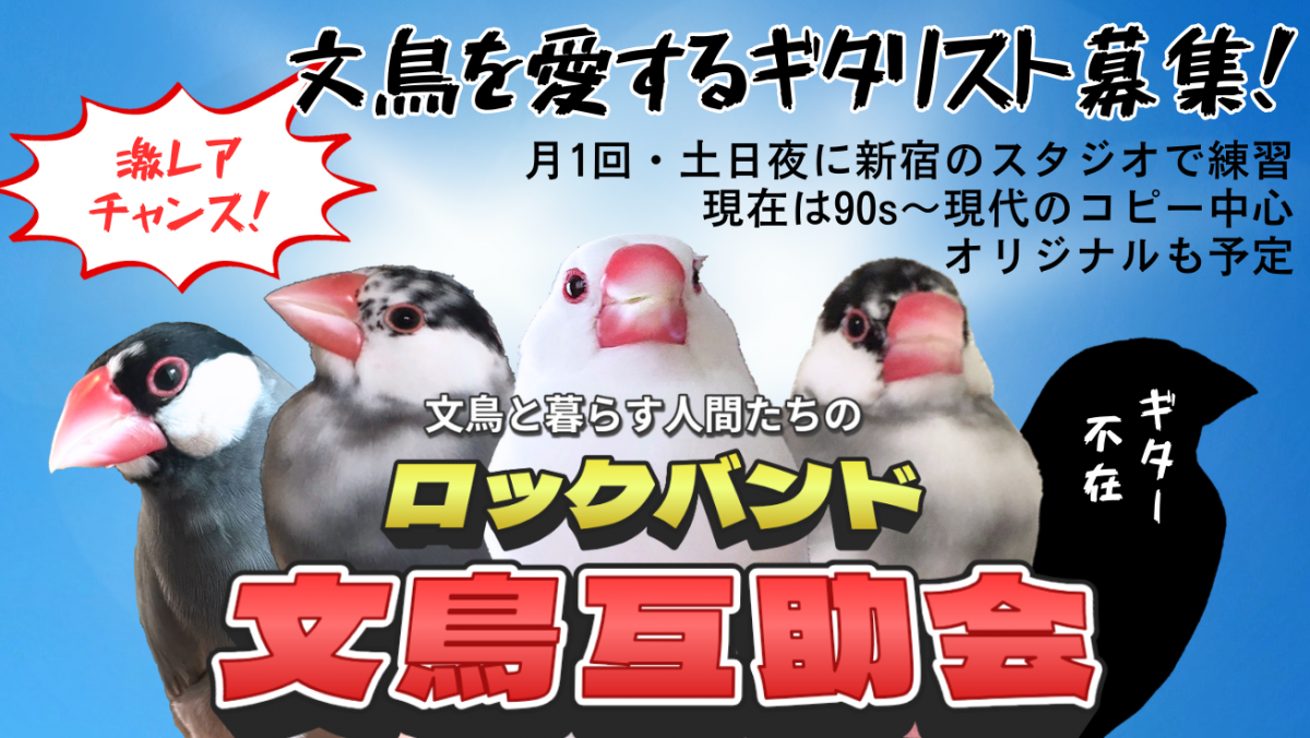 文鳥ギタリストの方、興味ありましたらお問い合わせください!